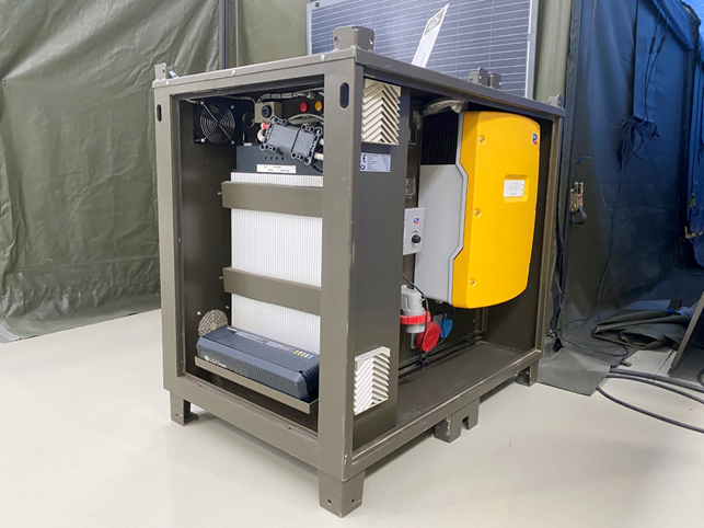 La Power Box è un’unità campale che trasforma gli impulsi dei pannelli fotovoltaici in energia elettrica usufruibile sul campo.